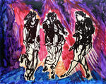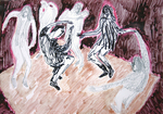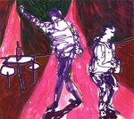 2006van 1987-1992 maakte ik +/-1500 tekeningen van dansende mensen in discotheken. hier een bewerking met acryl van een foto-afdruk van 1 zo'n schets
