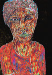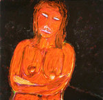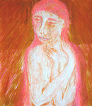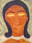 2006serie van spirituele vrouwenportretten, indirect afgeleid van Maria als vertegenwoordiger van het goede, zachte, vergevende in de mens (zeer gemengde techniek op papier)