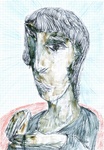 2005serie van spirituele vrouwenportretten, indirect afgeleid van Maria als vertegenwoordiger van het goede, zachte, vergevende in de mens (stift, potlood en photoshop op papier)