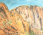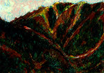 2007Gezicht op de Pyreneeën vanaf de berguitlopers bij Palau-Saverdera (oostindische inkt, potlood, grafiet, pastel op aquarelpapier)