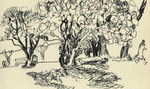 1990Bomen in steden vind ik vaak zeer bijzondere aanwezigheden. In Barcelona tekende ik er vele. (marker op ruitjespapier).