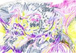 2007we worden op de wereld gegooid in n krachtenspel dat de menselijke maat ver te boven gaat - naar een tekst van the doors (zeer gemengde techniek op papier)